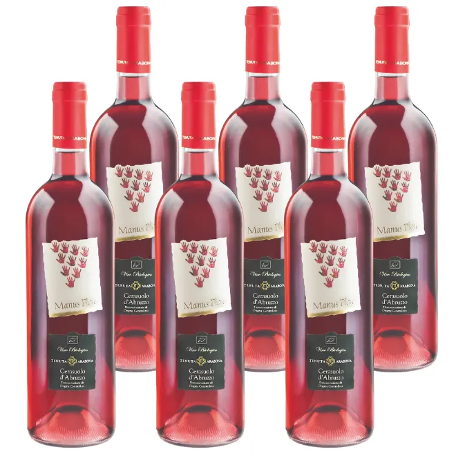 Der Cerasuolo d'Abruzzo DOC "Manus Plere" ist ein eleganter Rosato, der den Charakter der Montepulciano-Traube auf frische und lebendige Weise zum Ausdruck bringt. Die Trauben werden im September von Hand geerntet und sorgfältig verarbeitet, wobei die Gärung bei kontrollierter Temperatur und ohne Hautkontakt erfolgt. So entsteht ein Wein, der seine feinen Fruchtaromen und seine Reinheit voll bewahrt.