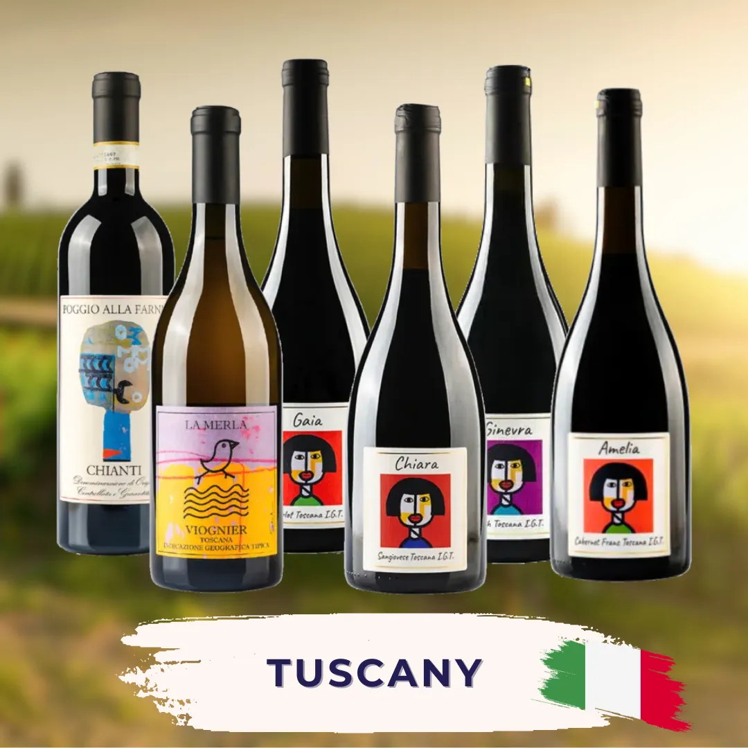 Die Toskana ist bekannt für ihre schönen Städte, ihr reiches Kulturerbe und ihre köstliche Küche. Außerdem stammen Weine wie der Chianti aus dieser Weinregion. Entdecken Sie hier ein Mixpaket aus sechs toskanischen Weinen!