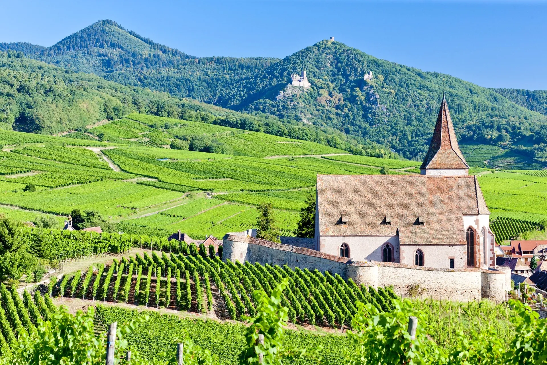 Das Elsass ist eine besondere Weinregion im Nordosten Frankreichs, in der französische Eleganz auf deutsche Präzision trifft. Die Reben wachsen an sonnigen Hängen der Vogesen, mit Blick auf malerische Fachwerkdörfer. Bekannt ist die Region für frische Weißweine wie Riesling, Gewürztraminer und Pinot Gris – aromatisch, ausdrucksstark und serviert in den typisch schlanken Flaschen, die man sofort erkennt.