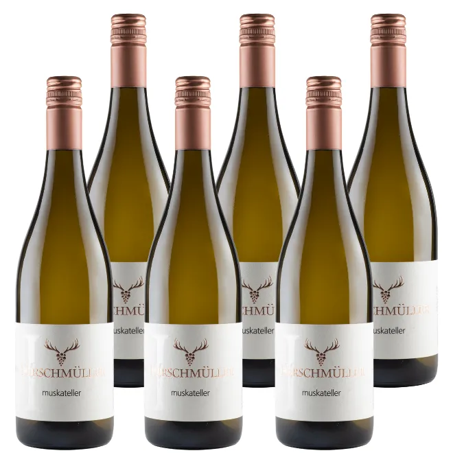 The 2023 Muskateller trocken from Wein & Sektgut Hirschmüller comes from airy, high-altitude vineyards above the Neckar, where the grapes on loess loam and Muschel limestone develop a striking freshness and aromatic brightness. The grapes are selected entirely by hand and gently pressed, after which the must is fermented chilled in stainless steel. The wine remains on fine lie until bottling, contributing to its elegant structure and subtle depth.