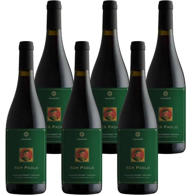 The Ser Paolo IGT Toscana from Fattoria Valacchi is an elegant and characterful red wine made entirely from the indigenous Tuscan grape Canaiolo. This ancient variety, once a constant companion to Sangiovese in classic Chianti blends, shines here in its purest form. The grapes are harvested by hand at the end of September and carefully selected to use only the ripest bunches. A cold maceration at temperatures below 12°C to preserve aromatic freshness is followed by a 30-day fermentation in stainless steel tanks. The wine then remains on fine lees for sixty days to develop additional complexity, after which it ages for 12 months in 500-litre new French oak tonneaux and refines for a further six months in bottle.
