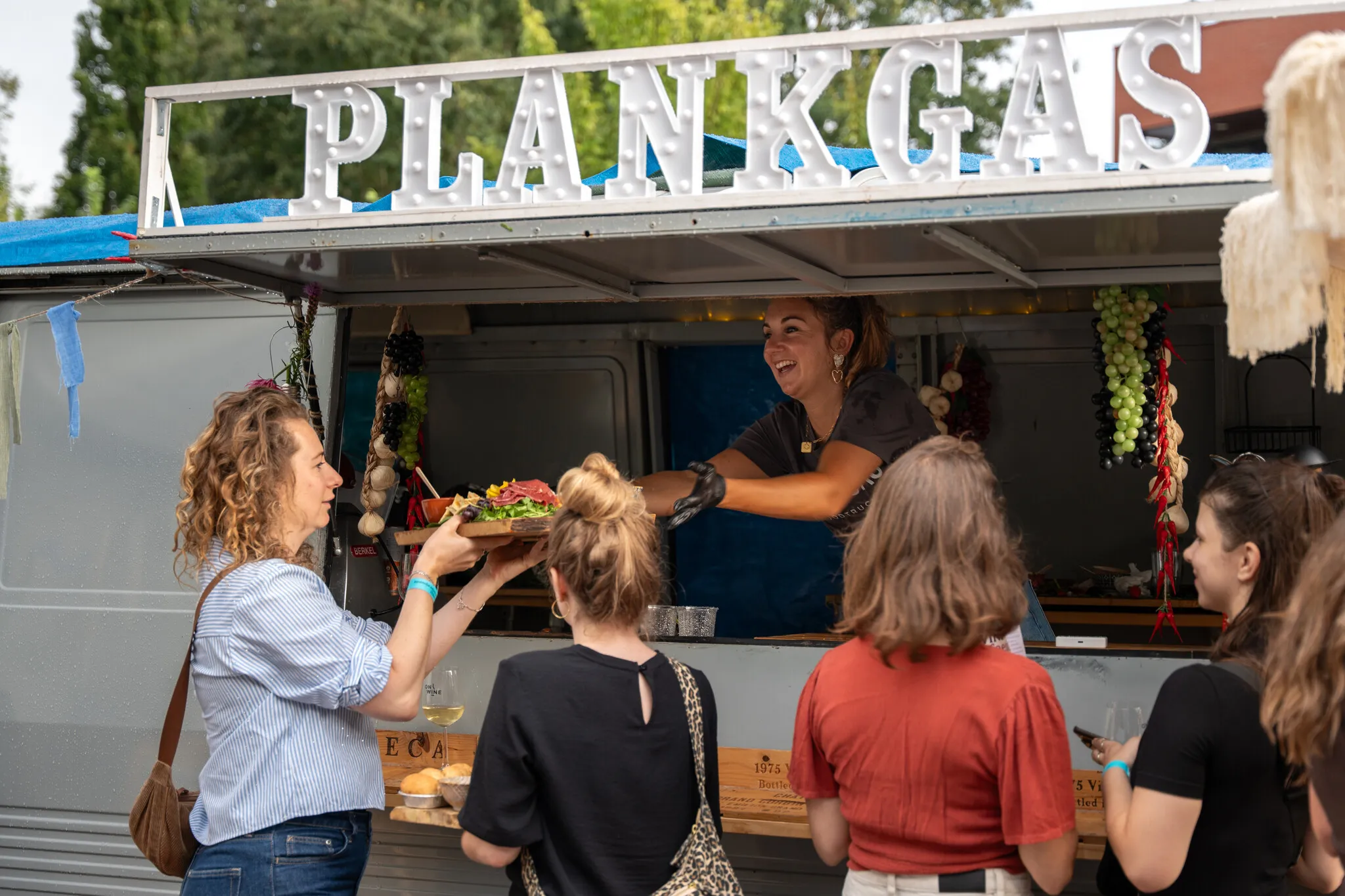 Food & music in a cozy setting. The Plankgas food truck offers plenty of delicious options to pair with your wine – think burgers, pulled jackfruit, and tasty sharing boards. There will also be other drinks available, such as water, soft drinks, and more.