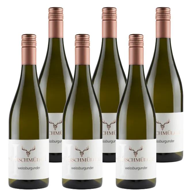The 2024 Weissburgunder trocken from Wein & Sektgut Hirschmüller comes from warmly located vineyards right on the Neckar, where the grapes grow on deep loess loam and Muschel lime soils. Thanks to the early morning harvest at cool temperatures, the grapes retain their aromatic freshness and purity. After a particularly gentle pressing, the wine ferments chilled in stainless steel and matures on the fine lie until bottling. The estate's organic method enhances the brightness, tension and purity that characterise this Weissburgunder.