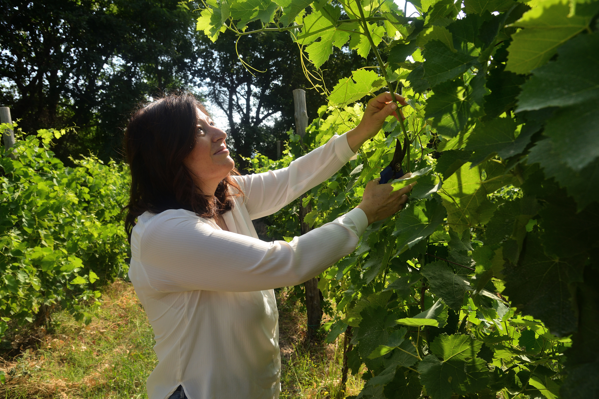 Elena Catalano is a passionate winemaker from Benevento, in the heart of Campania, where her estate is located on the slopes of Monte Pino, about five kilometres from the city centre. The vineyards are at an altitude of about 400 metres above sea level and cover a total of 10 hectares harmoniously distributed on a single slope. The rows of vines are laid out according to the traditional rittochino system, a technique that regulates water flow on sloping terrain and prevents erosion - a testament to the care and precision with which the land is worked.