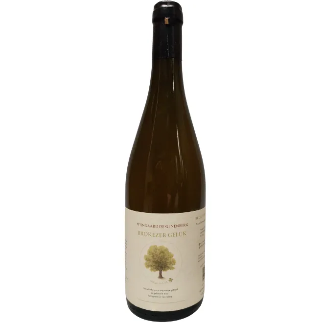 Brokezer Geluk 0,75L is een witte wijn die direct bij het inschenken zijn charme laat zien. De geur springt uit het glas, met een expressieve mix van rijp fruit en florale tonen. Deze wijn is een aromatische blend van Muscaris en Bronner, waarbij de Muscaris zorgt voor geurige intensiteit en de Bronner voor frisse spanning. In de neus en in de smaak komen tonen naar voren van passievrucht, rijpe gele appel en vlierbloesem, terwijl een vleugje honing het geheel rond en rijk maakt. Niet alleen in de goudgele kleur, maar ook in geur en smaak is die honingtoets heerlijk herkenbaar. De afdronk verrast met een subtiel pepertje van witte peper, dat het rijpe fruit elegant afrondt.