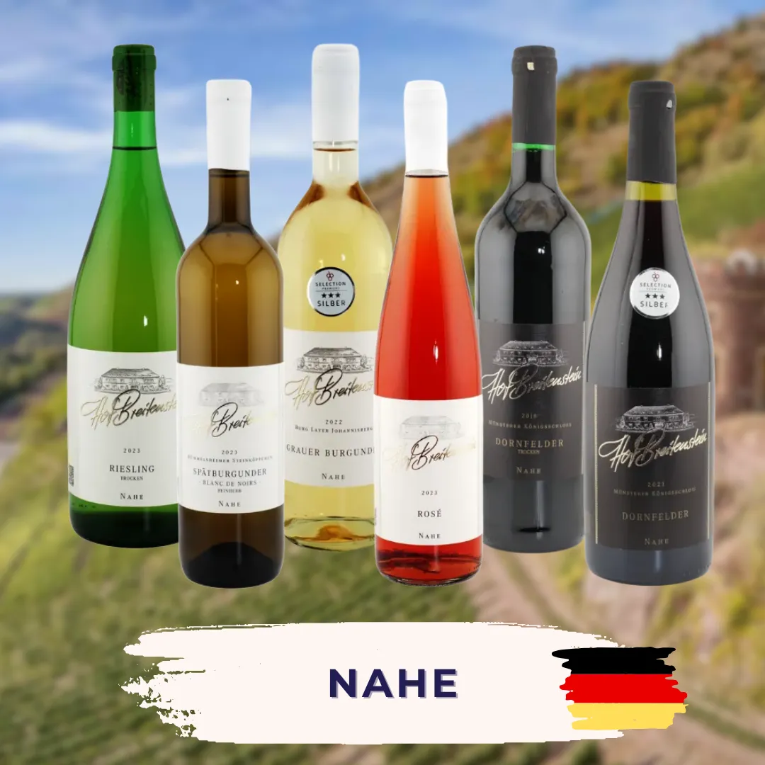 Ontdek de veelzijdigheid van de Nahe met dit proefpakket. Van fris en mineraal tot zacht en fruitig, deze selectie laat de rijkdom en diversiteit van de regio perfect zien, ideaal voor elke wijnliefhebber die wil proeven wat Nahe te bieden heeft.